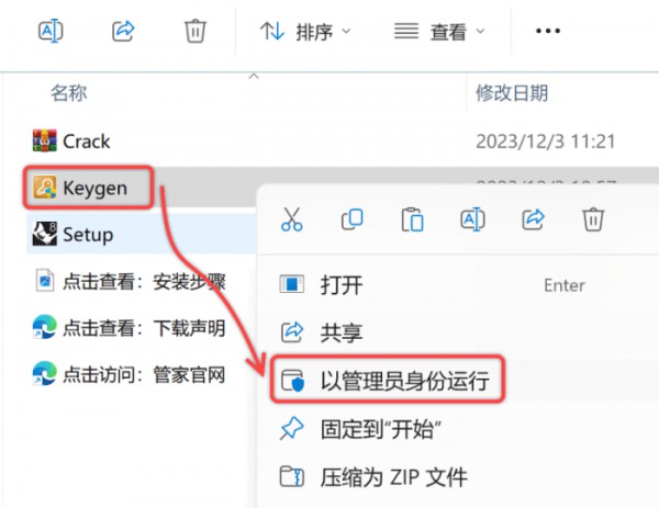 8、解压后,右击Keygen破解文件,选择以管理员身份运行。