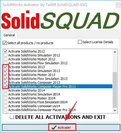 17、勾选相关2013版本的选项,点击【Activate!】选项。
