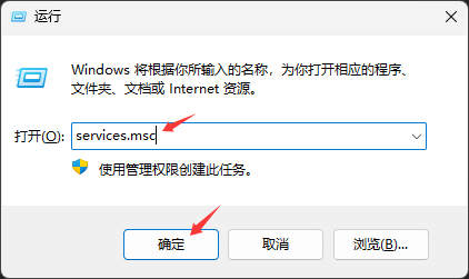 9、在键盘上按【win+r】键,输入【services.msc】,点击【确定】。