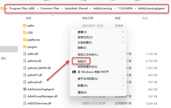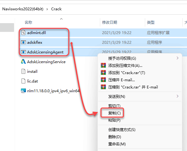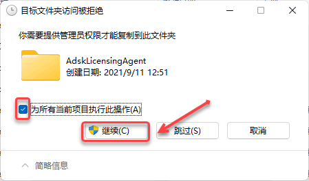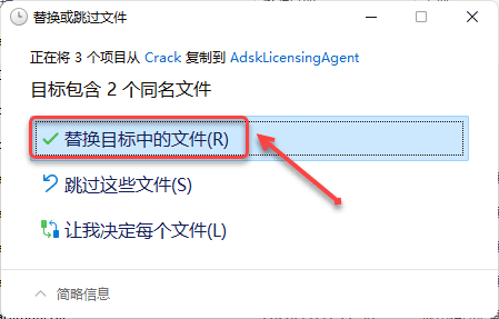 16、回到【Crack】文件夹,选中【adlmint】、【adskflex】、【AdskLicensingAgent】,鼠标右击选择【复制】。![]() 17、打开路径:C:Program Files (x86)Common FilesAutodesk SharedAdskLicensing11.0.0.4854AdskLicensingAgent 在空白处鼠标右击选择【粘贴】。 ![]() 18、点击【替换目标中的文件】。 ![]() 19、勾选【为所有当前项目执行此操作】,点击【继续】。 ![]() 20、回到【Crack】文件夹,双击打开【nlm11.18.0.0_ipv4_ipv6_win64】。
