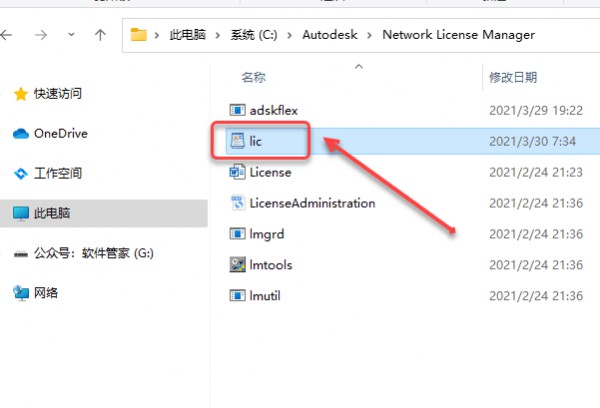 31、双击打开【lic.dat】(打开方式选择记事本)。