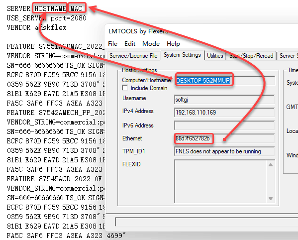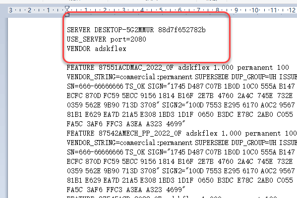 32、将打开的lic文档中的【HOSTNAME】和【MAC】字符修改为步骤30界面【Hostname】和【Ethemet】显示的对应信息,图下图所示。