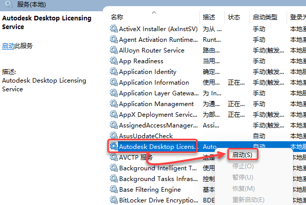 41、鼠标右击【Autodesk Desktop Licensing Service】选择【启动】。