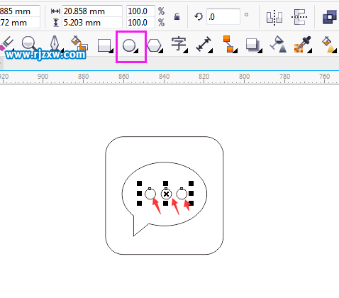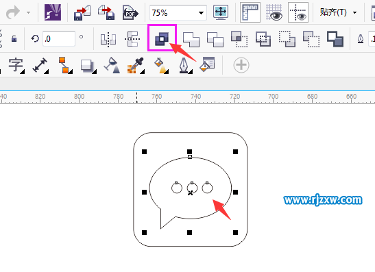 6、选中三个小正圆与外面的图形,点击合并处理。把小圆挖空处理。