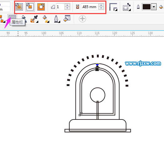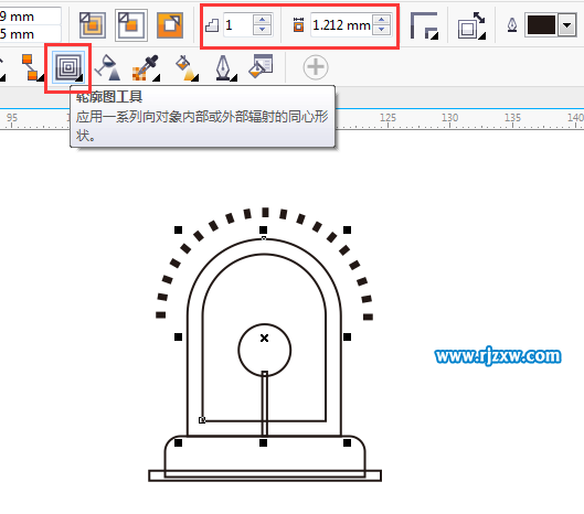 第8步:选中灯壳的图形,点击轮廓图工具,进行偏移图形。
