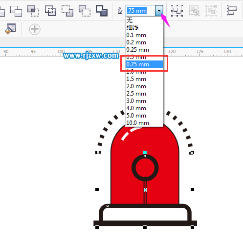 第17步:把不要的线都删除。选中小圆与上面的矩形,把轮廓设置粗一些。