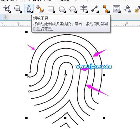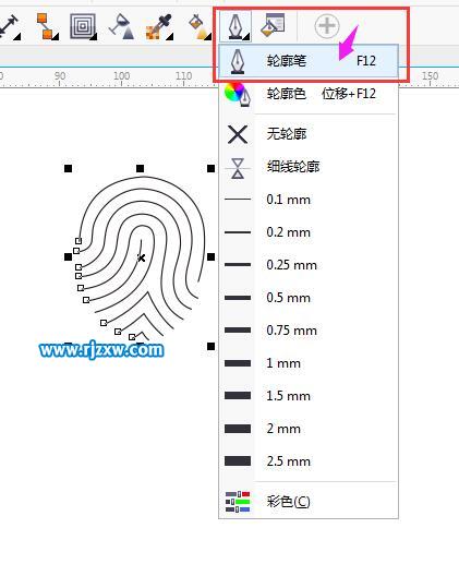第5步:选中所有的指纹,点击轮廓笔功能,或是按F12打开。