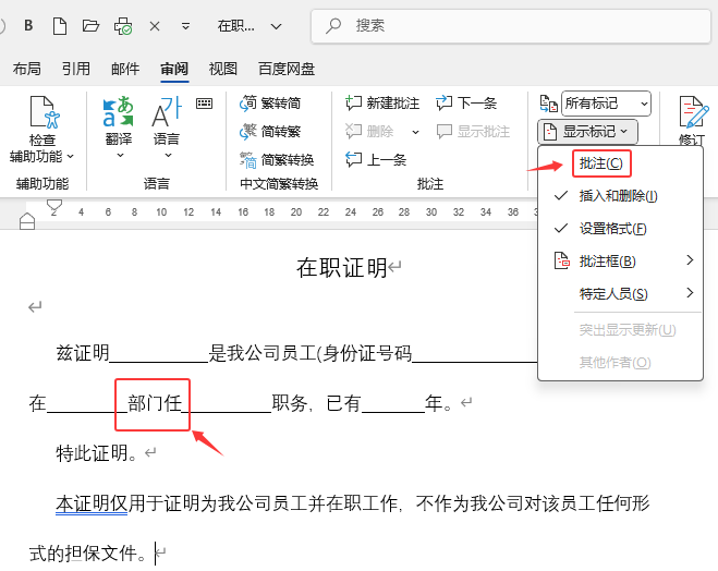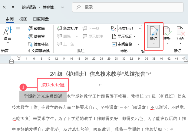 1、打开Word2024软件,打开做好的文档,选择要删除的批注选项。 2、点击【审阅】菜单,再点击找到【删除】选项。 [阅读全文]