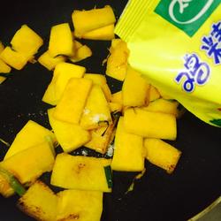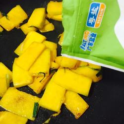 5、倒入南瓜翻炒片刻。
