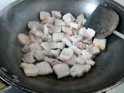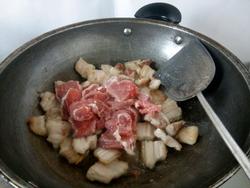 3.锅不放油,倒入肉进去翻炒,干煸一会出油。