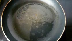 7.盛一勺面浆倒入锅中摇晃至全锅底面,等饼边翻起就可以翻面了。