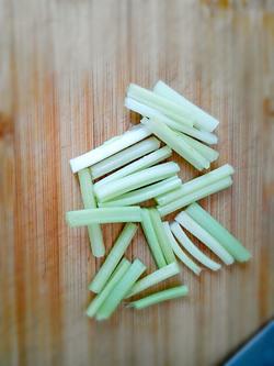 菜谱小贴士:两根香芹必备,放了才有清香味儿,淀粉一定不要多,此美食由软件自学网首发,薄薄一层!