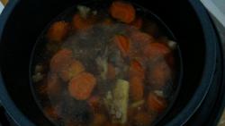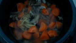 6.把羊肉胡萝卜放入电压力锅,倒入适量的水,放入姜丝大茴。