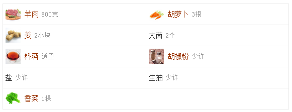 健康功效:羊肉:补肾壮阳、益气、扩张血管 食材用料:
