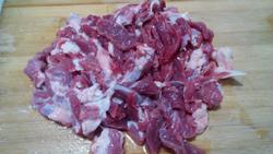 1.羊肉洗净,切成细条。