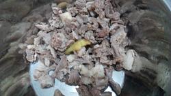 5.开锅,撇去浮沫,捞出羊肉用温水洗净。