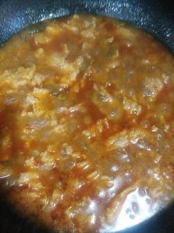 8.放入两勺豆瓣酱糖 十三香炒出香味