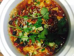 14.撒上葱花 辣椒丁 芝麻 放上香菜 就可以了
