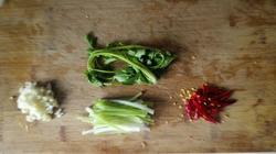 8.油热后把葱,蒜,红辣椒倒入锅中翻出香味倒入黄瓜,粉皮上面。