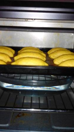 7.第二次发酵后,取出烤盘,预热烤箱190度,给面团刷上一道全蛋糕液,放入烤箱20分钟,面包上色即可;