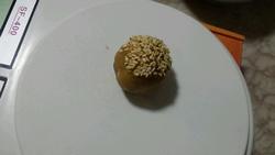 6.取一份大约20g揉圆,表面沾少许芝麻。
