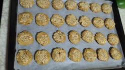7.按扁,排入烤盘。也可以刷蛋液直接烤!上下火180度,15分钟。