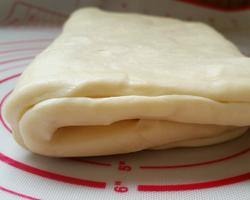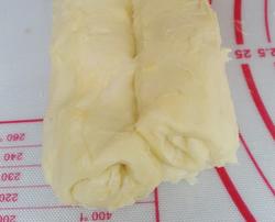 10.叠四折,再放入冰箱松弛20分钟,以此重复3次。