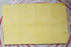 4.将180g黄油切片,放保鲜膜里擀成薄片备用。