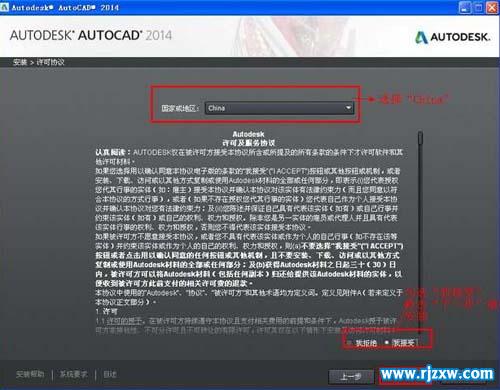 第5步、国家与地区选:China,许可协议选我接受,点击下一步。