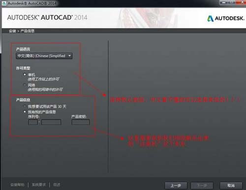 第5步、产品语言设置中文(简体),许可类型为单机,产品信息的序列号或产品密钥在注册机里面找。