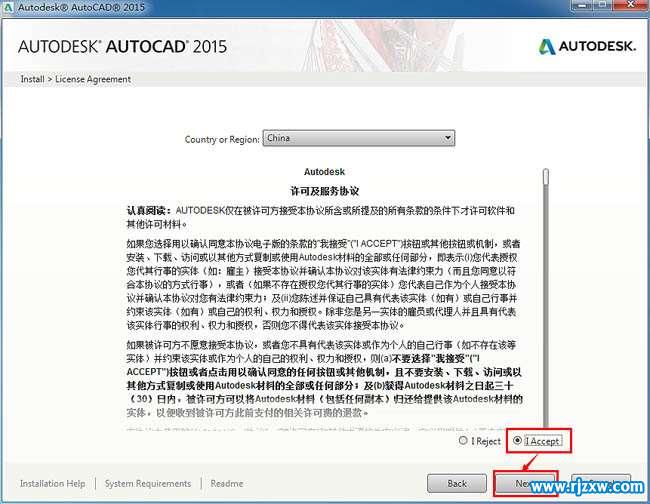第3步、设置国家为中国,点击我接受,再点击下一步。