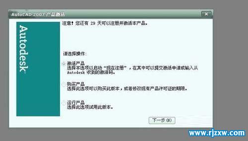 第1步、打开CAD2007软件,弹出产品激活,选激活产品,点击下一步。