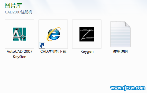 第3步、打开从本页面下载的CAD2007注册机。双击打开Kegen。