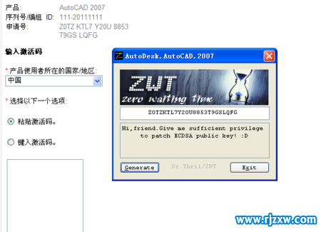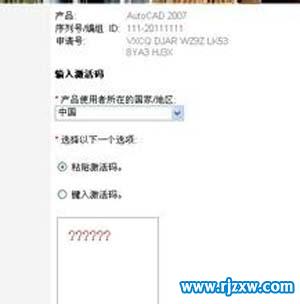 第5步、然后选中产品使用中国,选输入激活码,把注册机上面的激活码复制到注册页机的激活码框内。点击下一步。