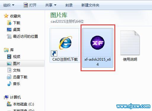 第7步、然后打开从软件自学网下载的CAD2015 64位注册机。