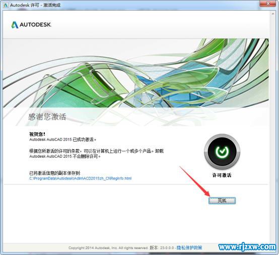 第9步、就这样完成了CAD2015 64位版本的软件激活。