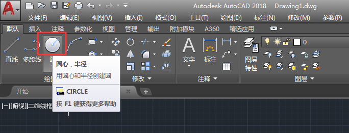 Circle命令的用法Circle命令是圆形绘制工具,可以简写为C命令。在命令栏中输入C空格后,可以按六种方式绘制圆形。 定义和用法:Circle命令可以用圆心和半径或直径创建圆,也可以用直径的两个端创建圆,或用圆周的三个点创建圆。还可以指定半径创建相切于两个对象的圆。更可以创建相切于三个对象的圆。 Circle圆命令实例:1、打开CAD2018软件,点击绘图版块的圆形工具,也可以输入简写C命令。或是输入Circle命令后空格进入。
