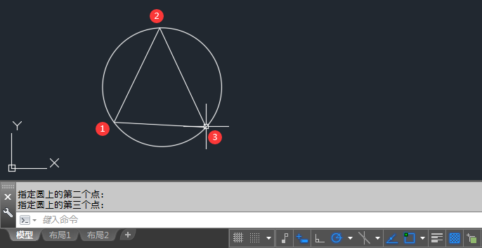 11、然后就可以点击三角形的三个角点。这样就可以参考三个点创建圆形。