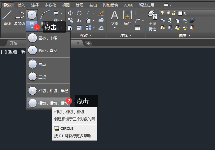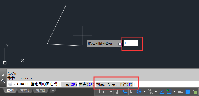 12、输入CIRCLE命令后,可以点击切点,切点,半径(T)或是直径输入T空格进入模式。