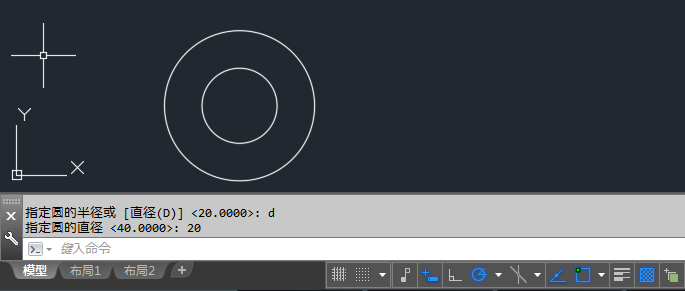 3、圆心点定好后,CIRCLE指定圆的半径,参考为20,也可以跟据你的要求而定。空格就完成半径创建圆。
