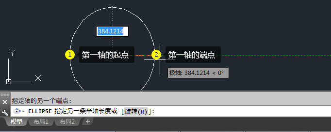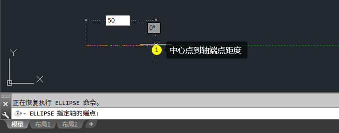 3、然后就可以ELLIPSE指定轴的端点。这里指的是从中心点到轴的端点。也就是椭圆长的一半距离。
