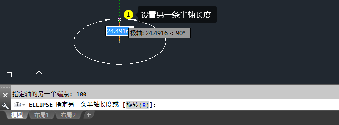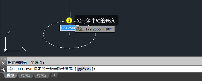8、长度画好后,ELLTPSE指定另一条半轴长度。也就是椭圆宽度的一半参数。输入完后就创建了椭圆。