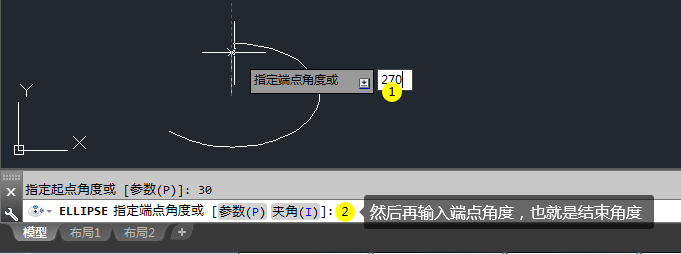 13、然后设置椭圆弧的结束角度,在这里设置270度为参考角度。