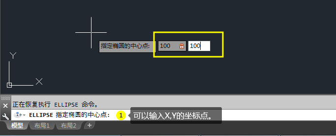 2、输入中心点的X,Y坐标,或是在绘图区点任意点作为中心点。