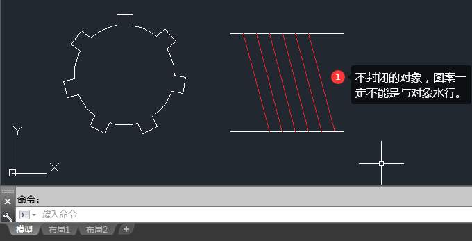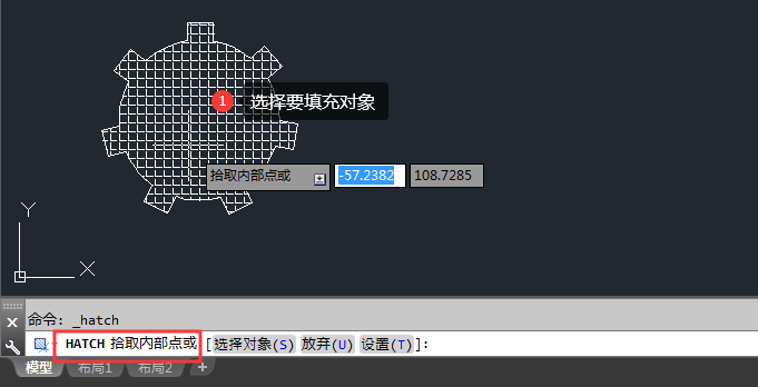2、HATCH拾取内部点,选择封闭的对象,这样图形就填上了图案。
