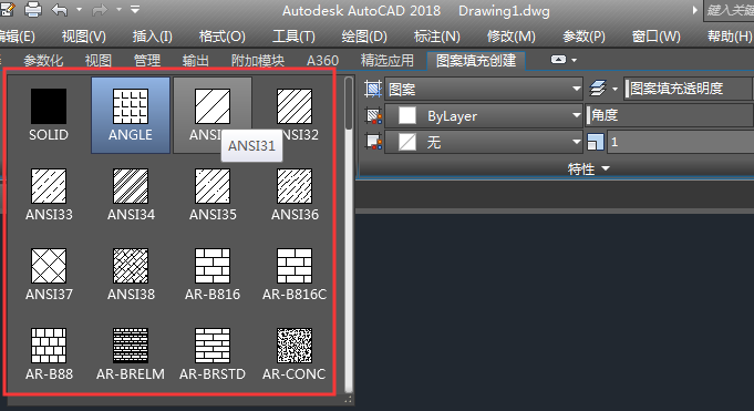 3、在图案填充创建设置栏上,可以选择更多的图案。效果如下: