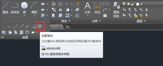 MEASURE命令的用法: 在CAD命令栏中输入MEASURE命令后空格--选择对象--输入长度--空格完成。这样就完成了。 定义和用法: MEASURE定距等分,沿对象的长度或周长按指定间隔创建点对象或块,使用DDPTYPE可设置图形中所有点对象的样式和大小。 MEASURE命令的实例用法: 1、打开CAD软件,在绘图版块找到定距等分,或是在命令栏上输入MEASURE空格。
