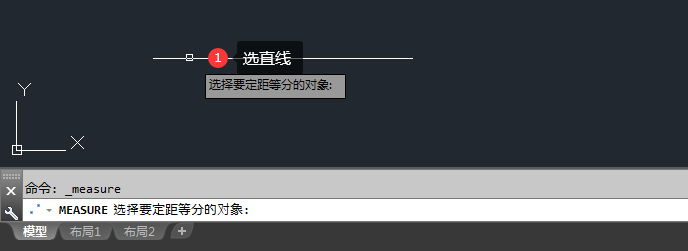 2、MEASURE选择要定距等分的对象,选择直线。空格进入下一步。