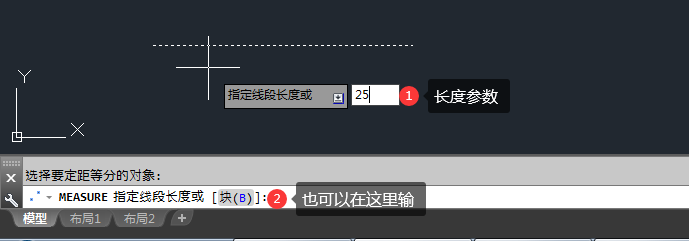 3、MEASURE指定线段长度,输入25为参考。