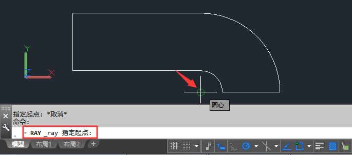 2、RAY指定的起点,也是跟据实际情况而定。在这里以圆心点为起点。